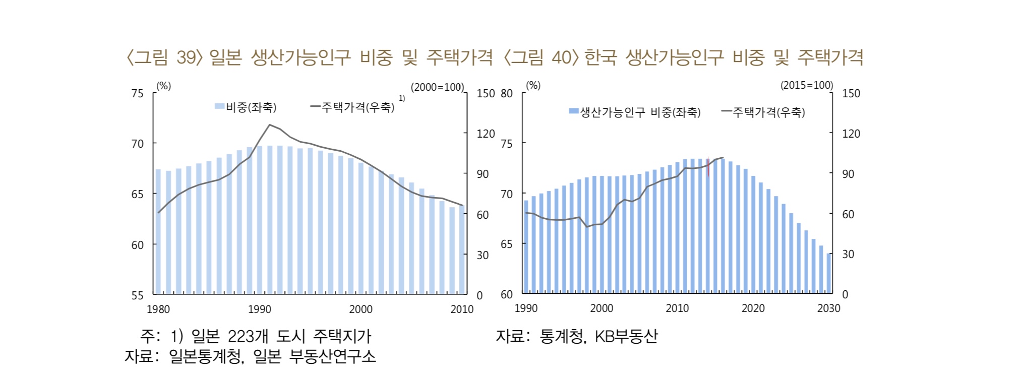 최근 부동산 커뮤니티에서 우리나라 집값 추이를 예상하는 데 사용되던 그래프다. 생산가능인구 비중이 줄어듬에 따라 주택가격도 떨어질까? 궁금증에 출처를 찾아봤다.