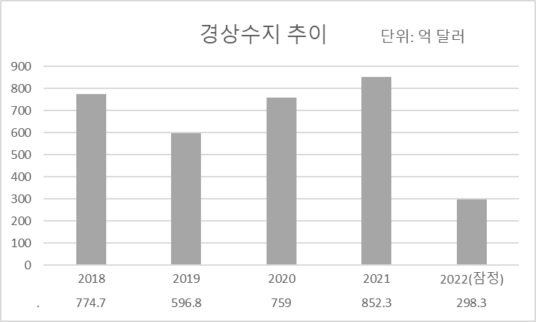 경상수지 흑자 규모 감소는 전년 대비 수출하는 것보다 더 많은 상품과 서비스를 수입하는 상황을 말한다. 즉 우리나라는 해외에서 받는 돈보다 더 많은 돈을 쓰고 있다.