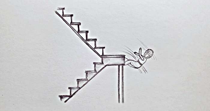 아래로 떨어짐