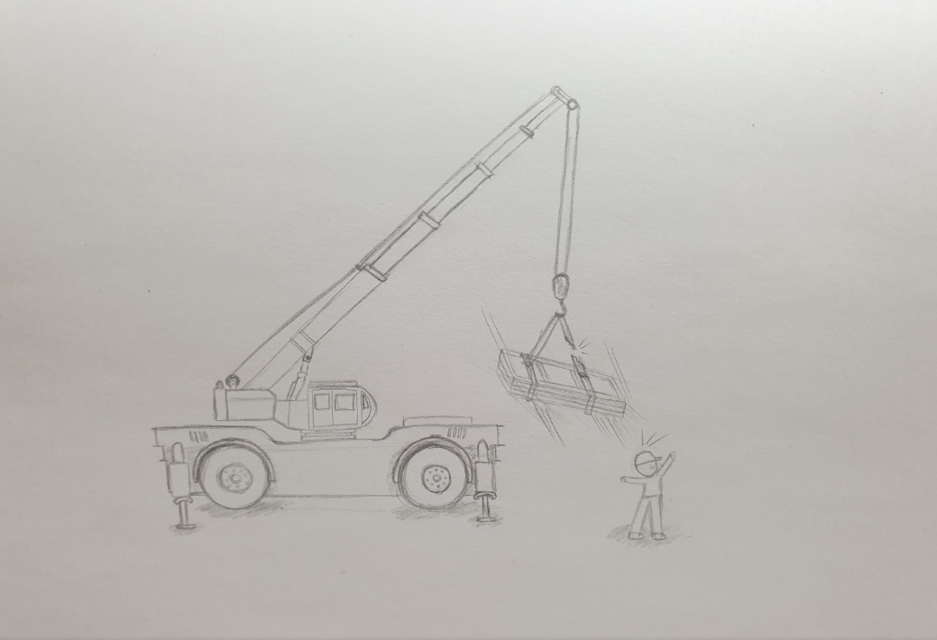 재해자가 이동식 크레인의 단열재 인양 작업을 신호하던 중