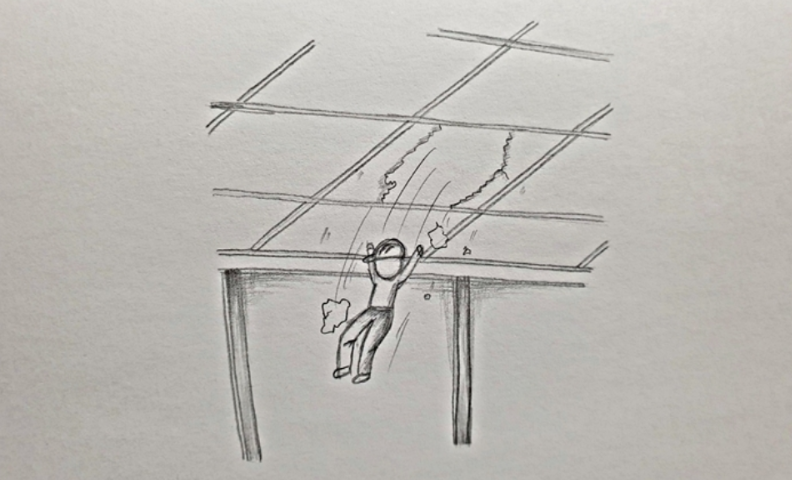 채광창이 파손되어 바닥으로 떨어짐
