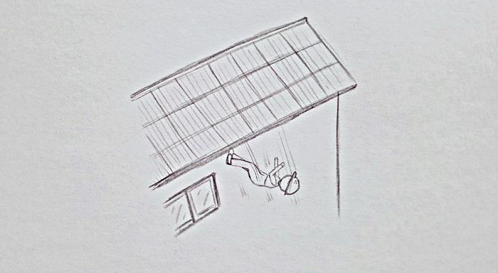 재해자가 축사 지붕 강판 설치 작업 중