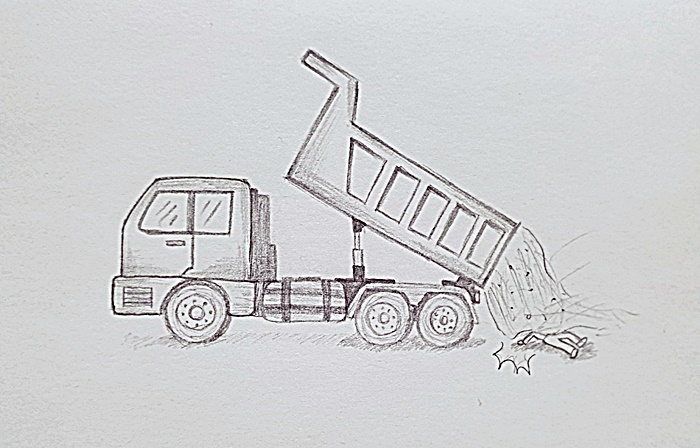 재해자가 덤프트럭 적재함의 토사를 하역하는 작업 중