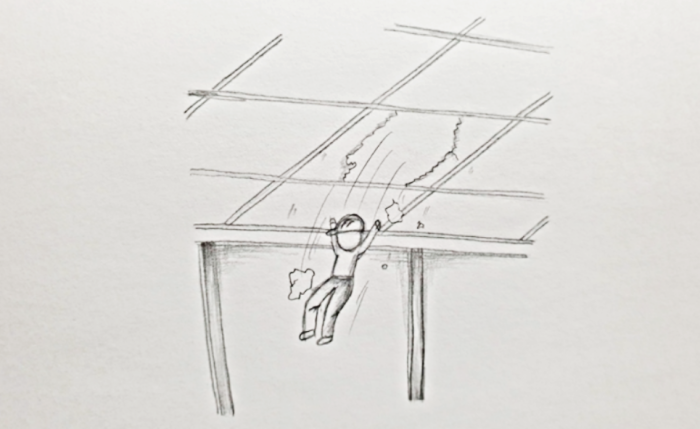채광창이 깨지면서 바닥으로 떨어짐