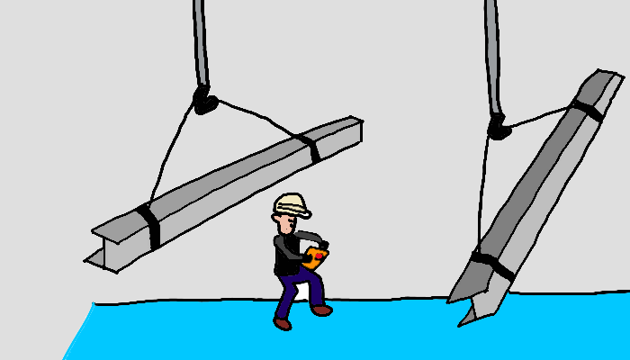 작업 중인 H형강과 뒤편의 H형강 사이에 끼임