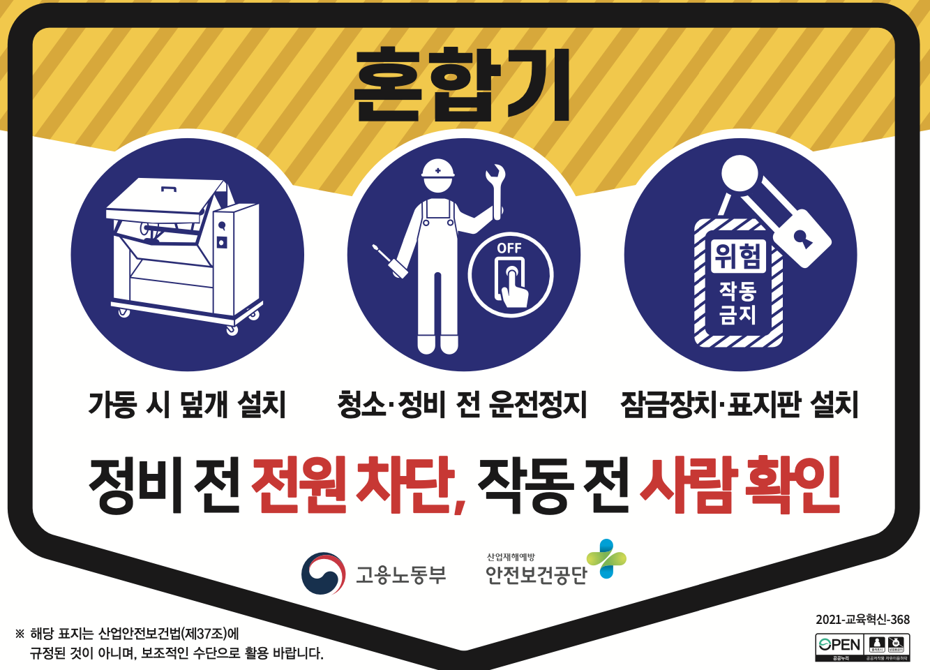 - 18:00 경, 화학제품제조 사업장의 플라스틱 첨가제 배합공정에서 재해자가 혼합기 본체와 덮개 사이에 끼임.