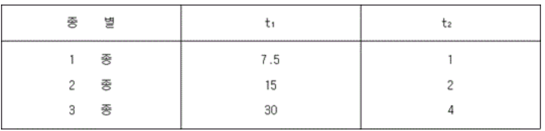분포형감지기로서 공기관식의 감도는 그 종별로 다음표의 공기관 자체의 온도상승률 t1 및 t2의 값에 따라 다음 각 호의 시험에 적합하여야 한다.
