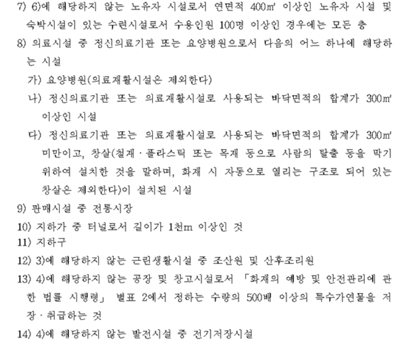 의료시설(정신의료기관 및 요양병원 제외)