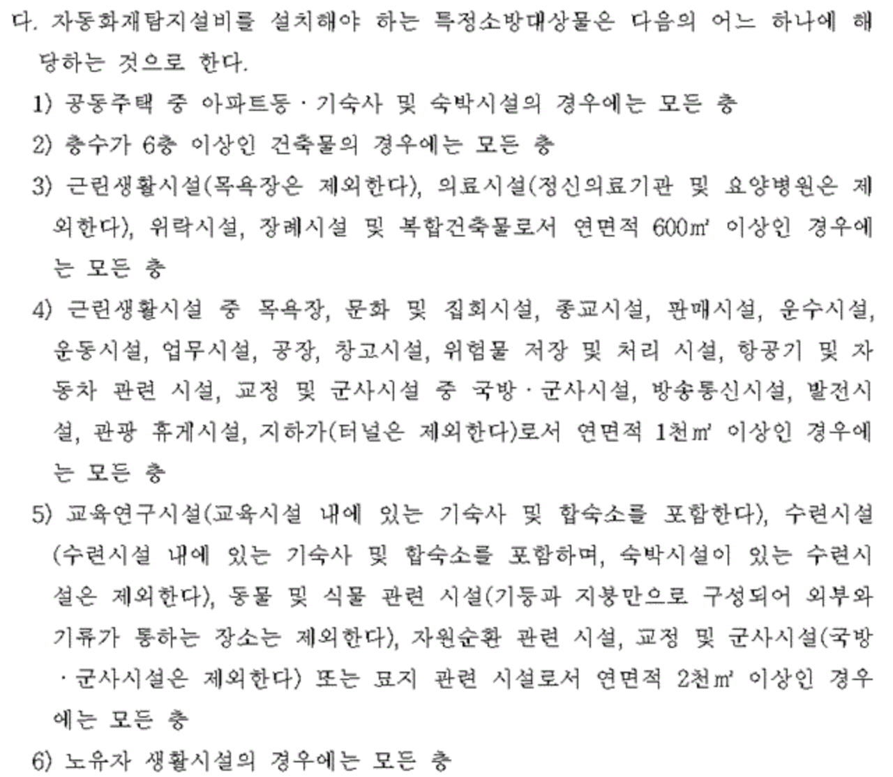 자동화재탐지설비를 설치해야 하는 연면적