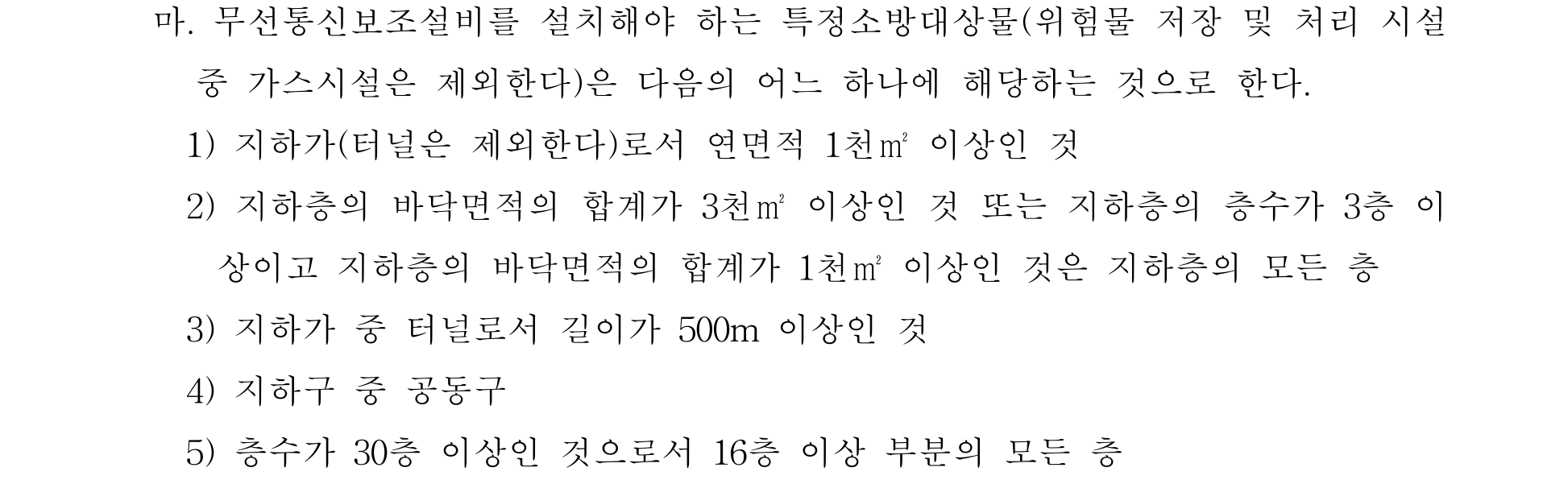 5) 디지털 방식의 무전기를 사용하는데 지장이 없도록 설치할 것