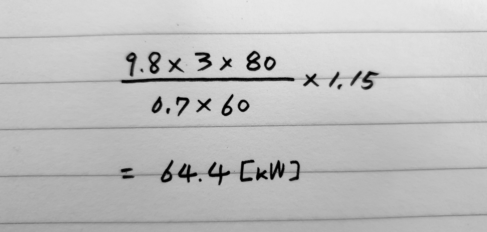 스프링클러설비용 펌프 전동기 모터의 소요동력계산