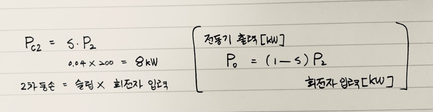 (만약 회전자 입력이 100kW라면, 2차 동손값은 4kW)
