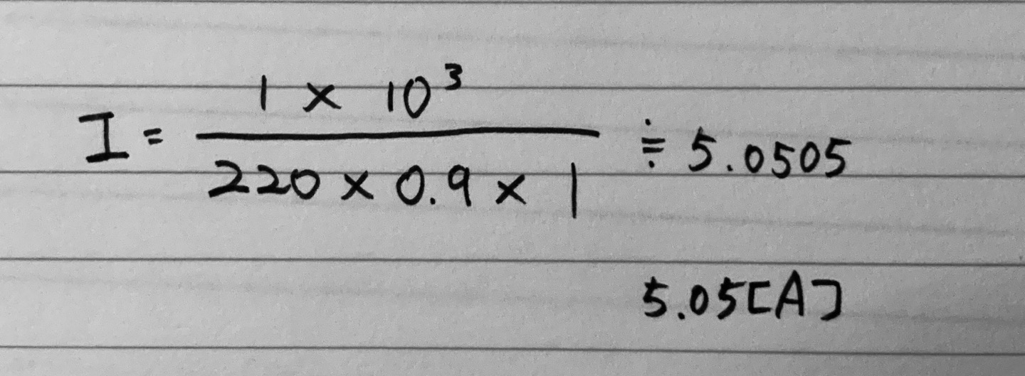 [ 220V 전원에 연결되었으며, 역률은 90%]
