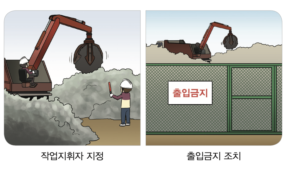 작업 구역 내 작업자와 집게차 운전자간 무전기 사용하여 작업 지시