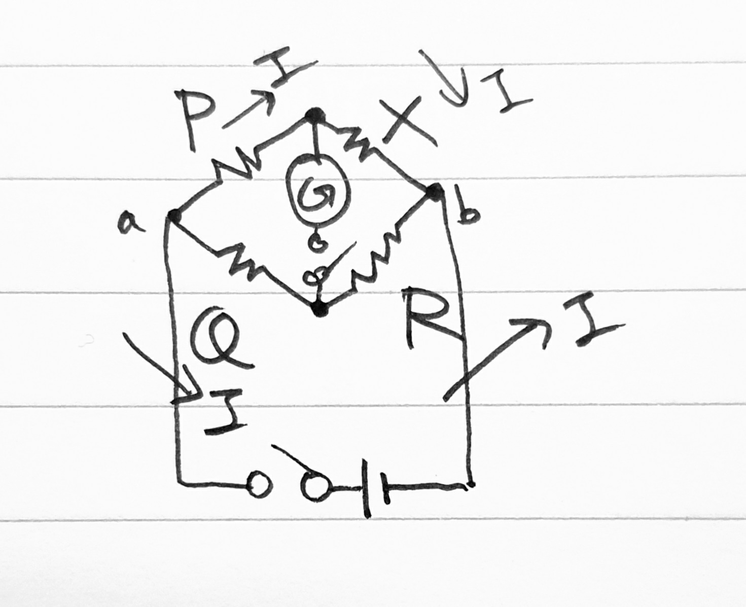 PR = QX 이면, 검류계 G에는 전류가 흐르지 않으므로 생략 가능