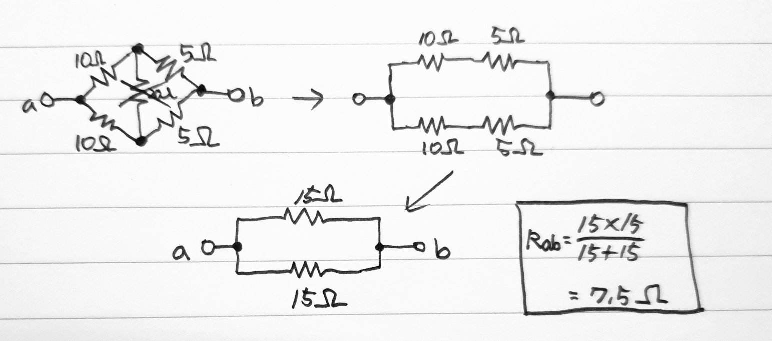 a와 b사이 합성저항 Rab는 7.5[Ω] 이다.