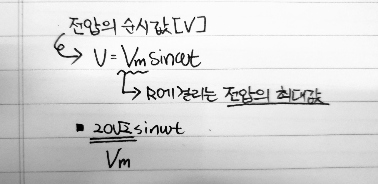 위 정류회로에서 저항에 걸리는 전압의 최대값은 다이오드에 손실이 없으면 저항에 걸리는 전압의 최대값이 된다.