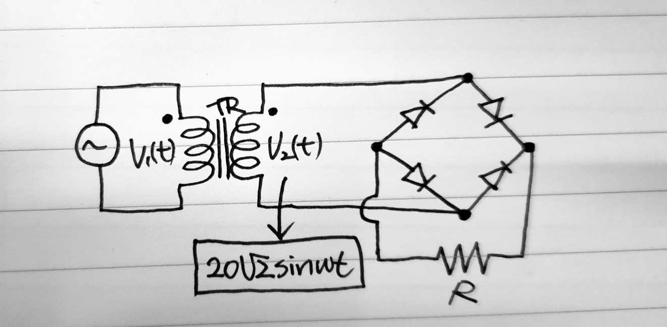 위 정류회로에서 저항에 걸리는 전압의 최대값은 다이오드에 손실이 없으면 저항에 걸리는 전압의 최대값이 된다.