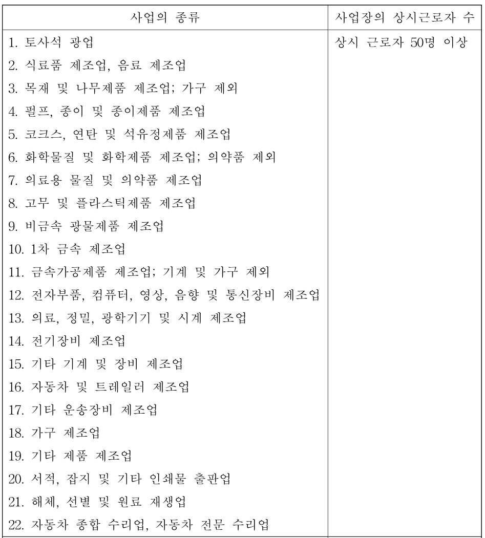 1차 금속제조업은 사업장의 상시근로자가 50명 이상