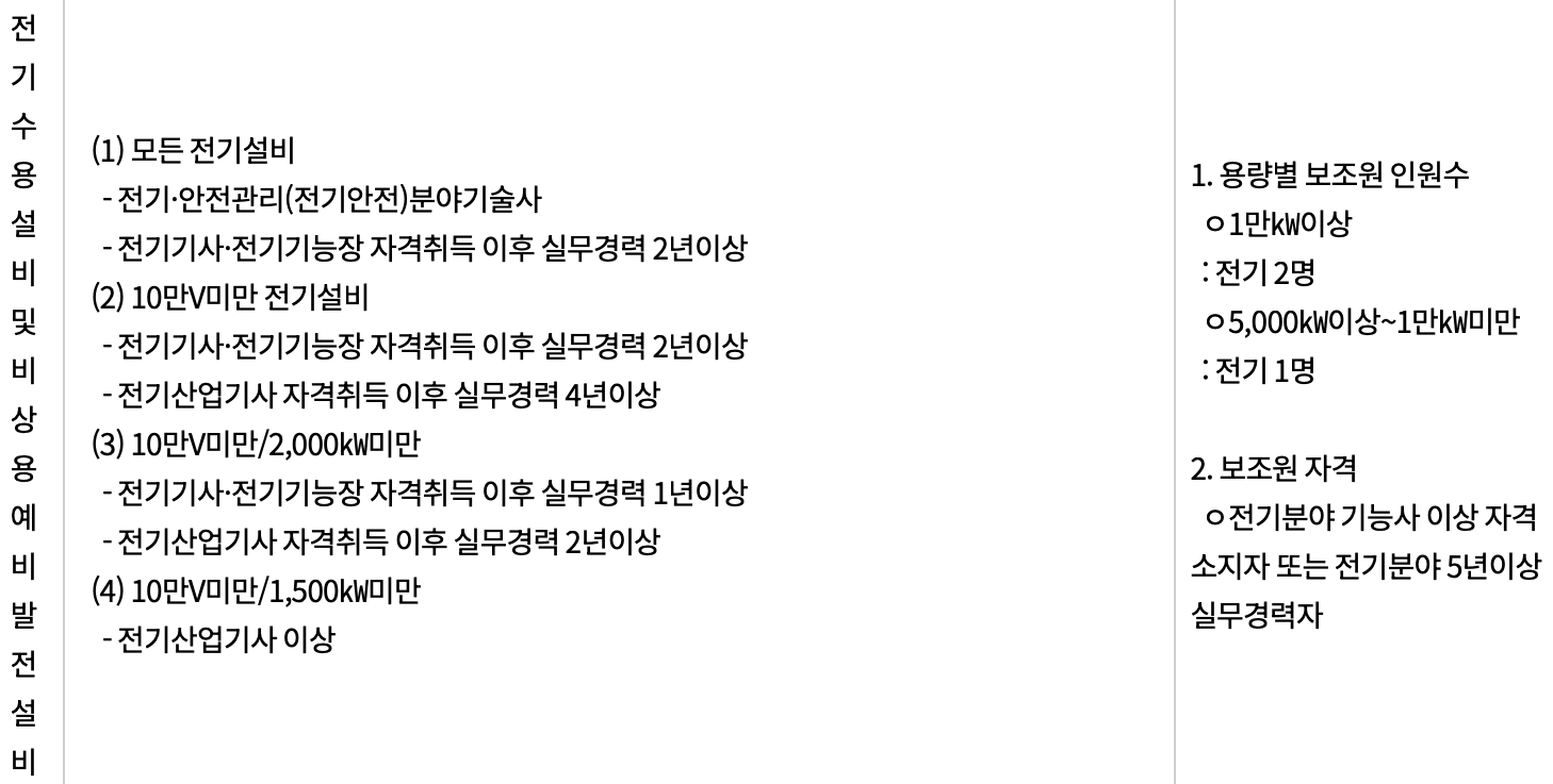 전기안전관리자 선임자격 및 인력기준
