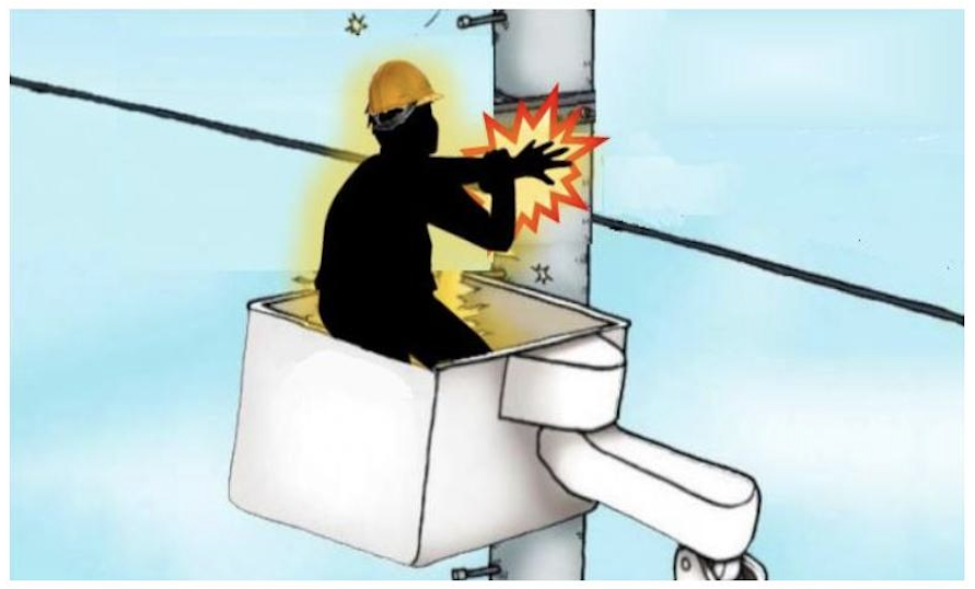 고소작업대 탑승하여 전도방지 연결작업 중 활선에 감전되어 재해자가 사망했다.