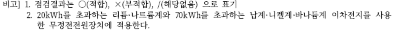단, 리튬·나트륨계는 20 kWh 초과, 납계·니켈계·바나듐계 이차전지는 70 kWh 초과한 무정전전원장치인 경우 월차 점검을 서식에 따라 점검한다.
