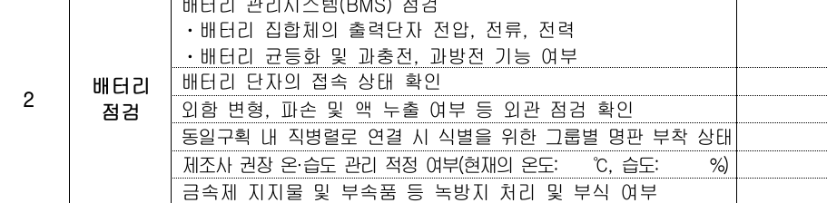 전기안전관리자는 배터리 과충전 기능 여부 등 배터리 폭발 예방을 위한 점검을 실시하여야 한다.