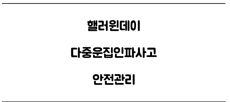 “본 저작물은 행정안전부에서 24년 작성하여 공공누리 제1유형으로 개방한 ‘핼러윈 등 다중운집인파 안전관리 강화(작성자:사회재난대응총괄과 )’를 인용하였으며, 해당 저작물은 행정안전부 홈페이지에서 무료로 다운받으실 수 있습니다.”