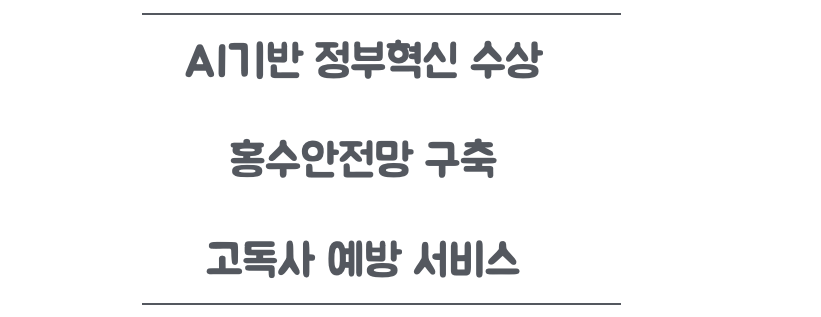“본 저작물은 행정안전부에서 24년 작성하여 공공누리 제1유형으로 개방한 ‘정부혁신 왕중왕전, 대상에 환경부.과기부 'AI를 활용한 홍수안전만 구축'선정(작성자:혁신기획과)’를 인용하였으며, 해당 저작물은 행정안전부 홈페이지에서 무료로 다운받으실 수 있습니다.”