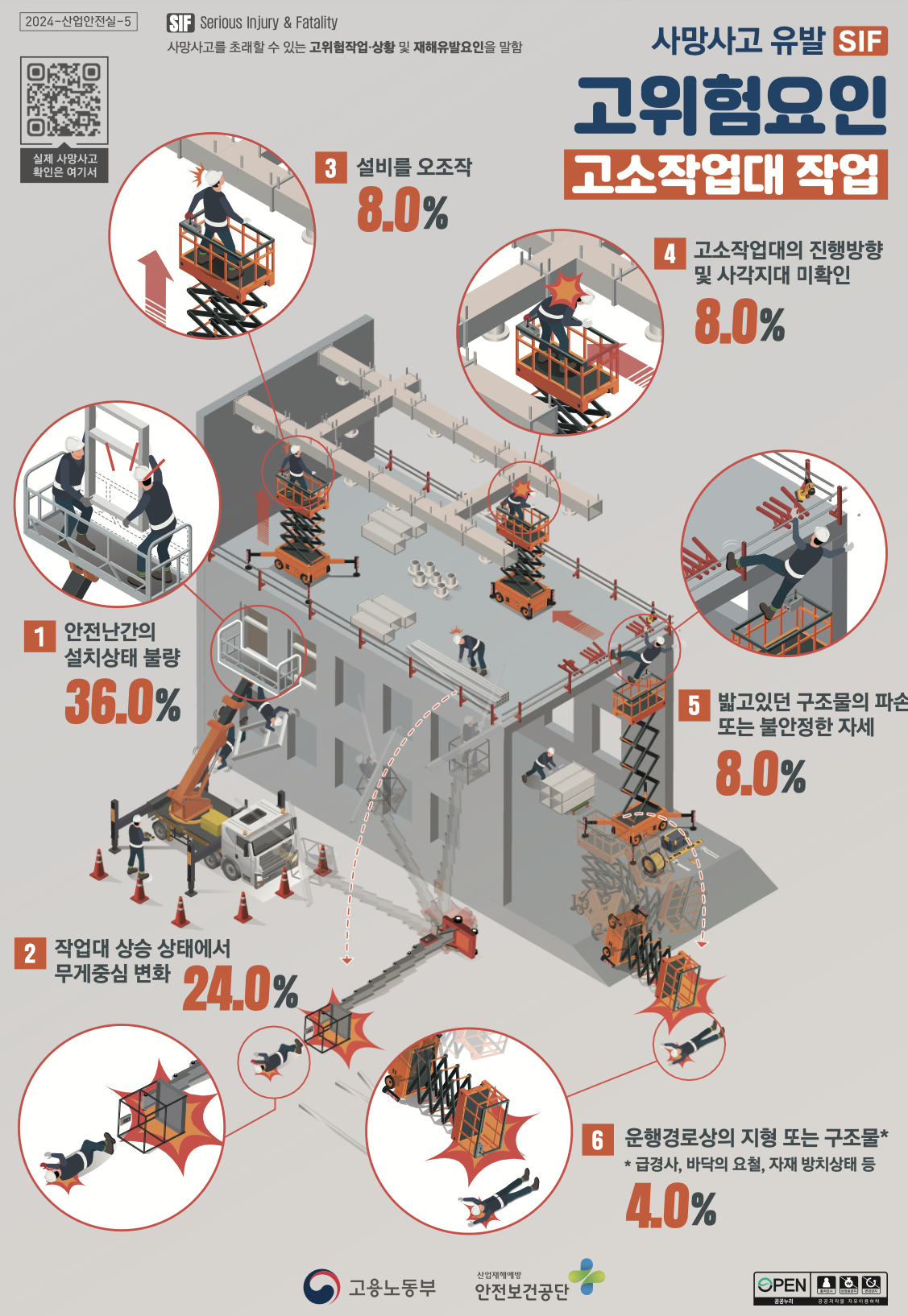 24년 11월 24일, 14시 10분경 경북 안동시 천막 교체 공사현장에서 고소작업대에 탑승하여 지붕 비가림막 실측 작업을 하던 작업자가 12m 아래로 떨어졌다. 인근 병원으로 이송된 재해자는 결국 숨졌다.