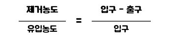 필터효율[%]은 제거농도를 유입농도로 나눈 값, 즉 필터가 악취 등의 유입 대비 얼마나 제거했는지를 표현한 것이다.