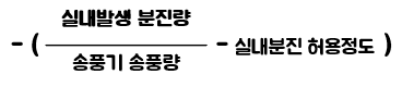 농도 = - { ( 재실인원 x 1인당 분진발생 ) / 송풍량 - 실내분진 허용농도 }