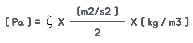 국부저항 = 손실계수 x ( 덕트 풍속의 제곱 / 2 ) x 공기 밀도