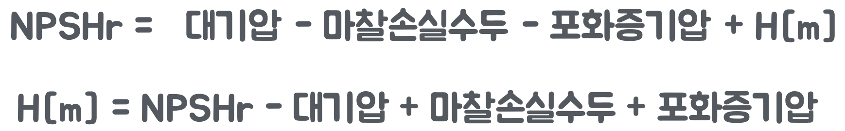 □ NPSHr은 펌프가 정상 작동하기 위해 흡입 측에서 확보해야 하는 수두다. 수두는 유체의 에너지를 높이(길이)로 표현한 것으로 압력, 속도, 위치(양정) 수두가 있으며, [mAq]를 사용한다.