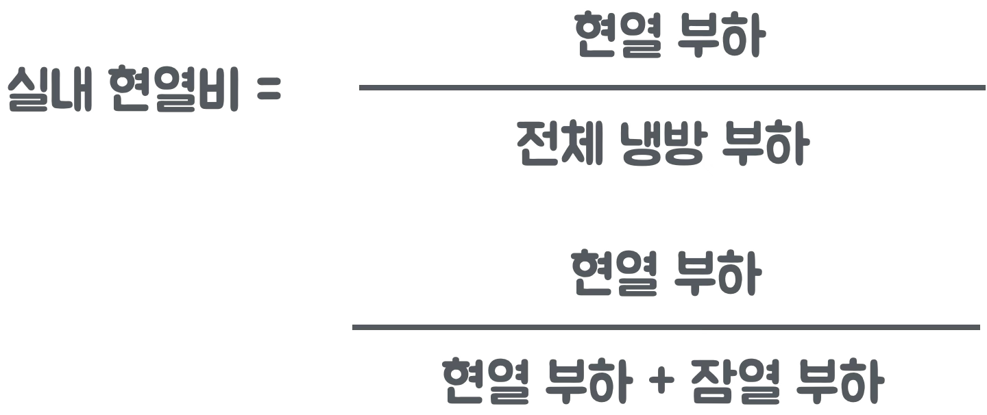 실내현열비는 냉방 공조 프로세스에서 전체 냉방 부하 중 현열 부하가 차지하는 비율을 나타낸다.