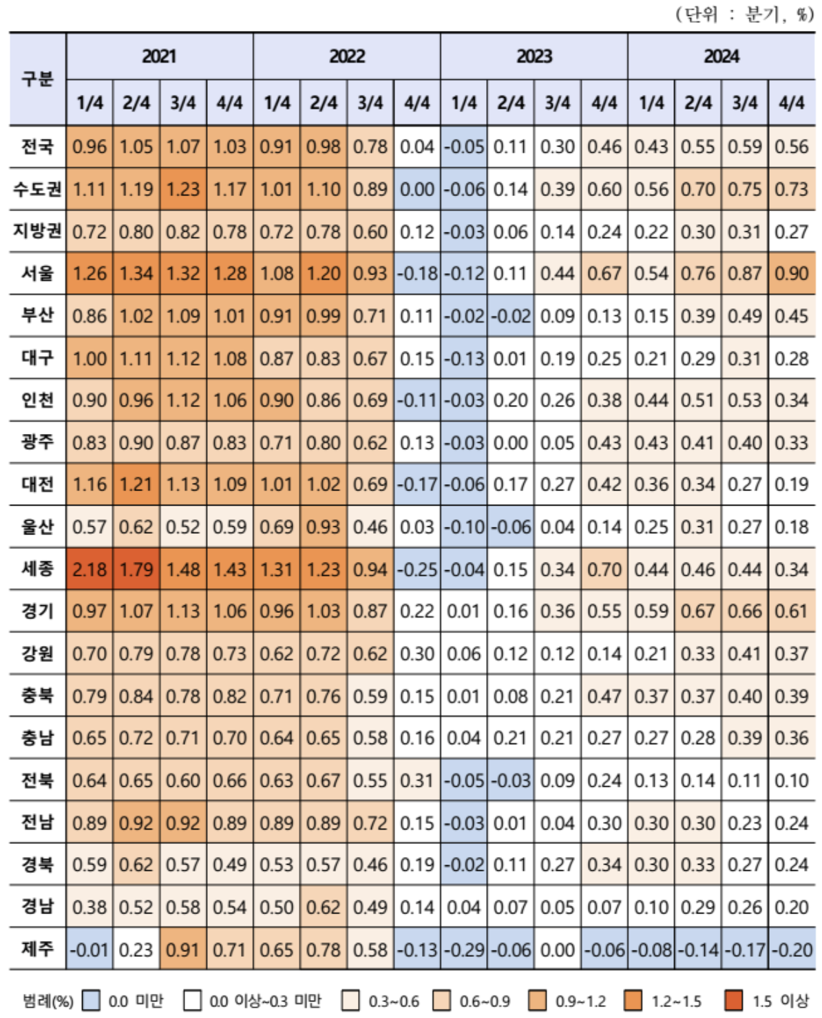 분기별 지가변동률 추이다.