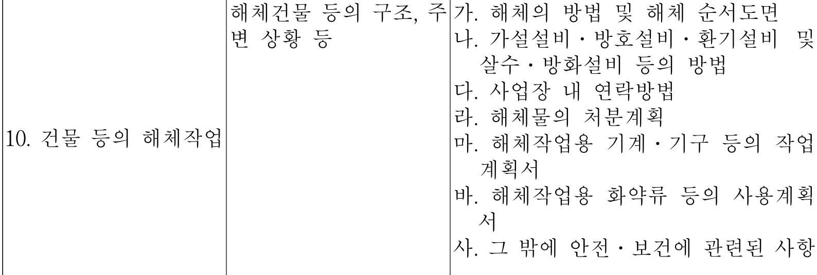 마. 해체작업용 기계·기구 등의 작업계획서
