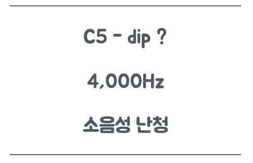 소음에 장기간 노출되면 달팽이관 기저부의 유모세포가 손상되며, 그 결과 고주파 영역부터 청력 손실이 시작된다. 특히 4,000Hz는 이들 구조에 음향에너지가 집중되기 쉬운 공진 주파수에 해당되어 가장 먼저 손상되는 영역이다. 따라서, 소음에 의한 C5-dip 현상이 가장 뚜렷하게 발생하는 주파수는 4,000Hz이다.