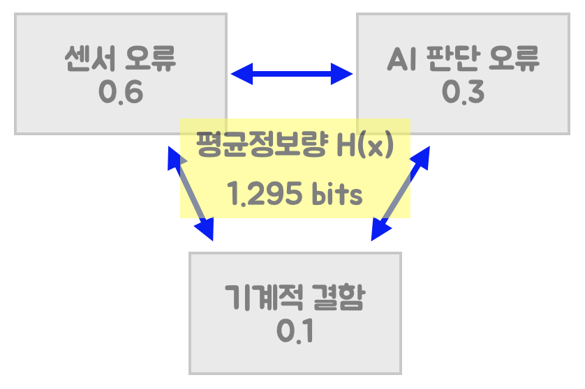 주어진 결함 원인들의 발생 확률을 바탕으로 기대할 수 있는 평균 정보량(엔트로피)은 다음과 같이 계산한다.