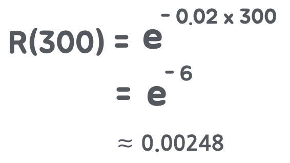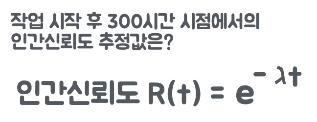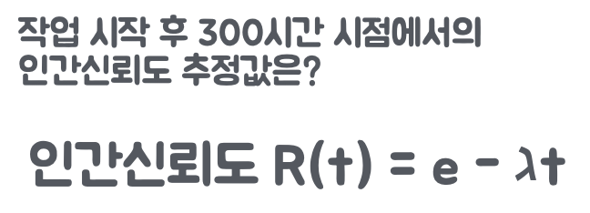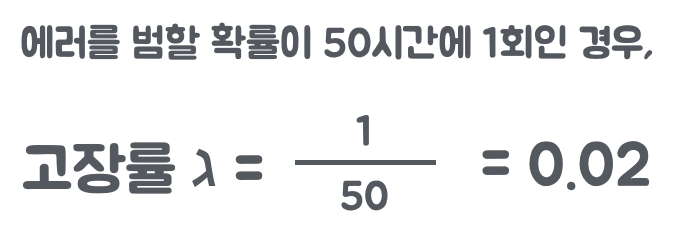 예를들어, 작업자가 50시간에 1회 진공계 검사 과정에서 에러를 범하여 고장률이 0.02로 조사되었다. 300시간 연속으로 생산품의 진공계를 검사할 경우, 에러가 없을 확률은 약 0.25%며, 99.75% 확률로 한 번 이상 실수한다고 볼 수 있다.