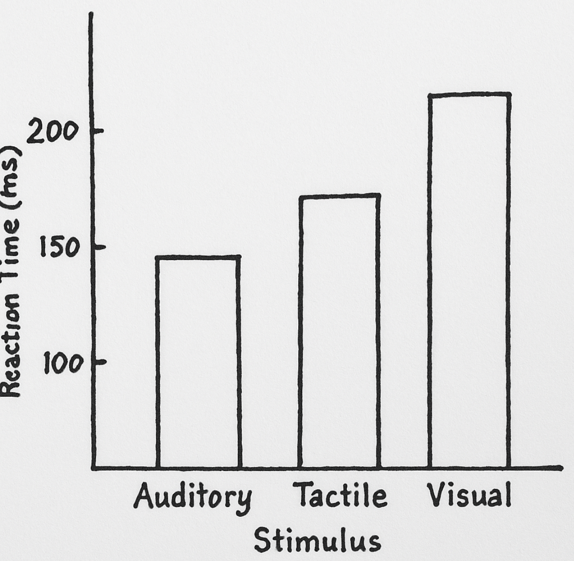 ① 자극의 양식: 시각, 청각, 촉각 중 청각 자극이 가장 빠르게 반응하는 경향