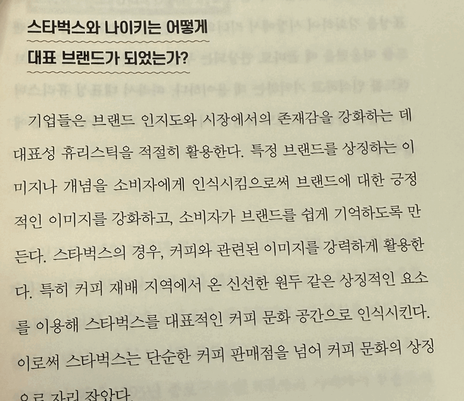 3. “나의 브랜드는 무엇을 떠올리게 하는가?”라는 질문이 중요하다. 기업들은 대표성 휴리스틱을 적절히 활용해 즉각적인 연상을 만든다. 스타벅스가 커피와 연결된 이미지를 일관되게 사용해 기억 용이성과 긍정적 이미지를 높인 방식이 전형적이다.