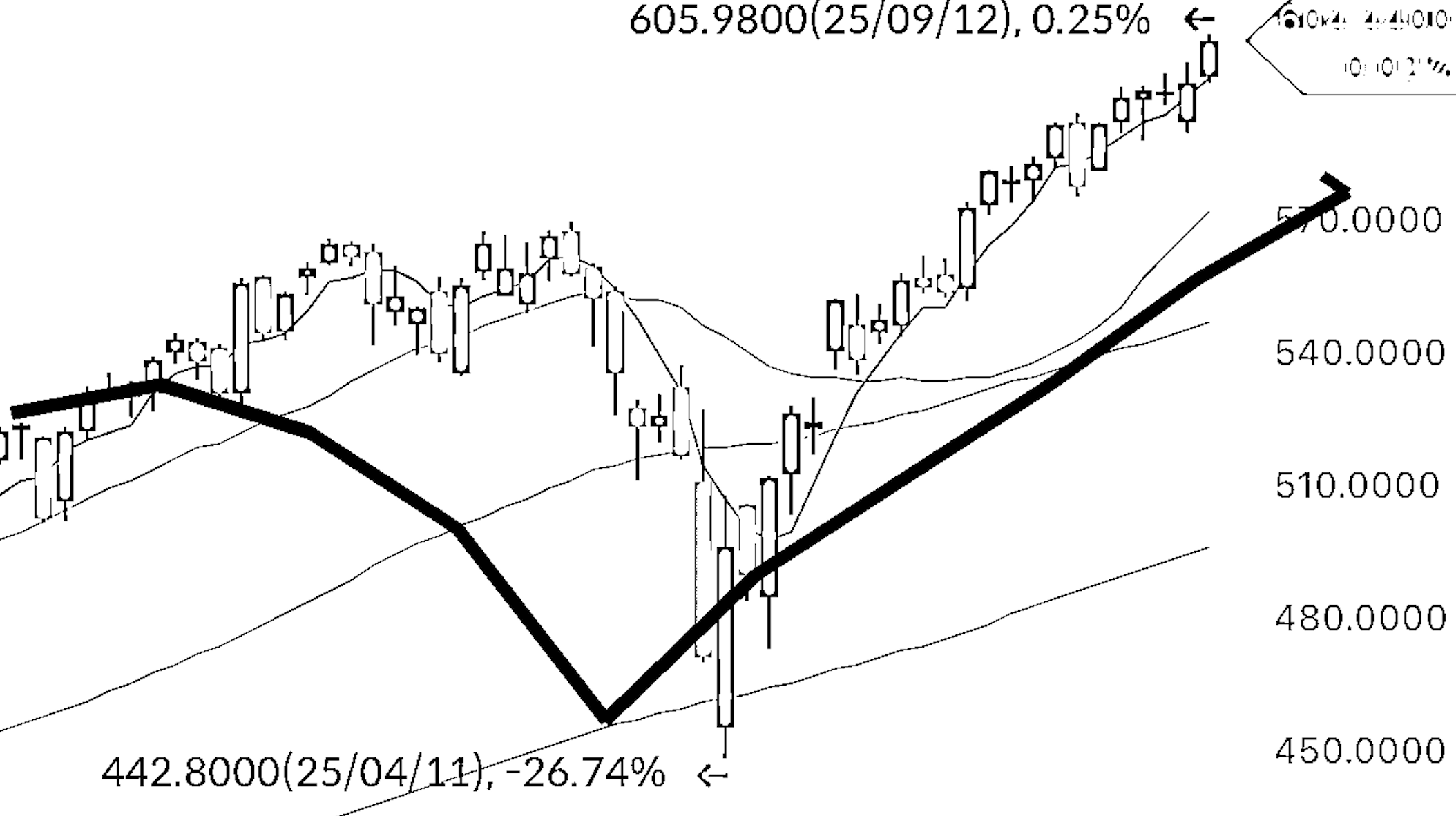 여름을 지나면서 흥미로운 장면이 이어졌다. 주가가 출렁여도 규칙은 그대로였고, 결국 9월에 600달러를 넘어섰다. 첫 매수분만 놓고 보면 약 22퍼센트 수익 구간이다. 적립식의 효과는 계좌의 수익률보다 변동성에 대한 태도에서 먼저 나타난다. 오를 때는 흥분하지 않고, 내릴 때는 조용히 추가 매수한다. 이 단순한 습관이 생각보다 강하다.