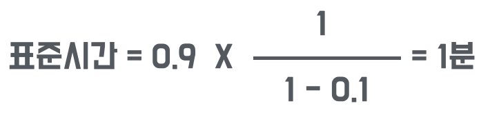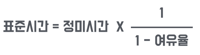 수식은, 표준 시간 = 정미 시간 × 1 / (1–여유율)