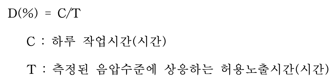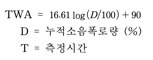 음압 수준이 전체 작업교대 시간동안 일정하다면, 다음 공식으로 산출한다.