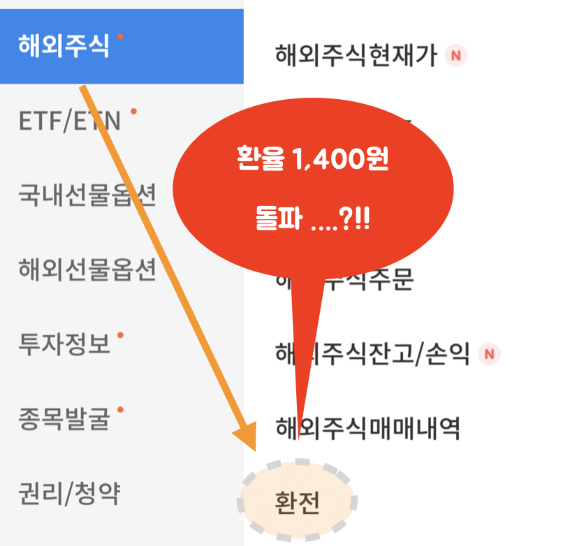 메뉴 - 해외주식에서 '환전'을 클릭하면 된다.