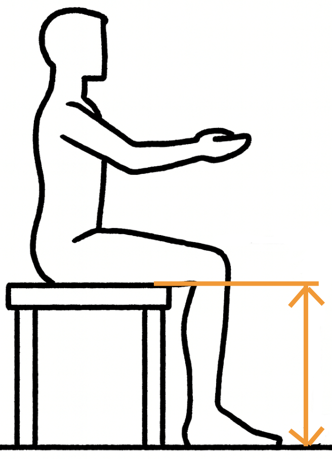 좌면의 높이는 바른 자세로 앉았을 때, 발이 바닥에 자연스럽게 닿도록 앉은오금높이를 기준으로 설계한다.