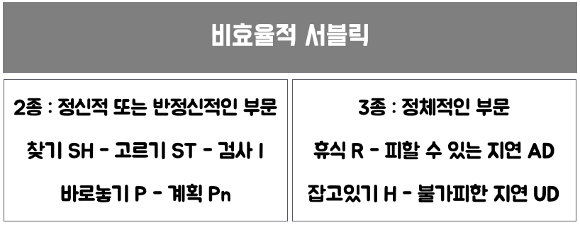 | Search | 물건이 어디에 있는지 눈이나 손으로 찾는 것 | 비효율적 |