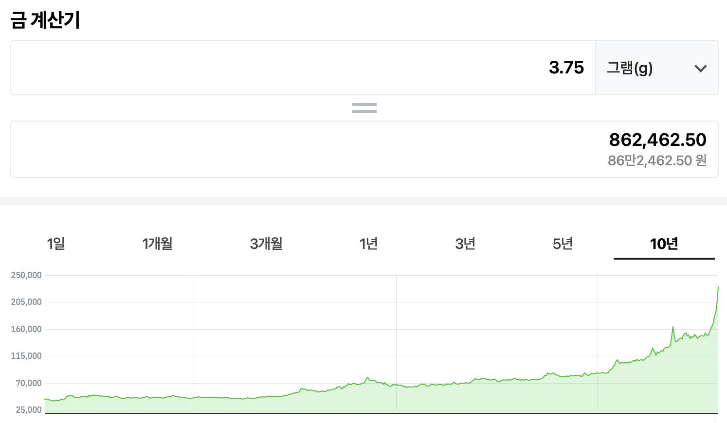 2. 국내 금(한국거래소 기준) 86만 2425원