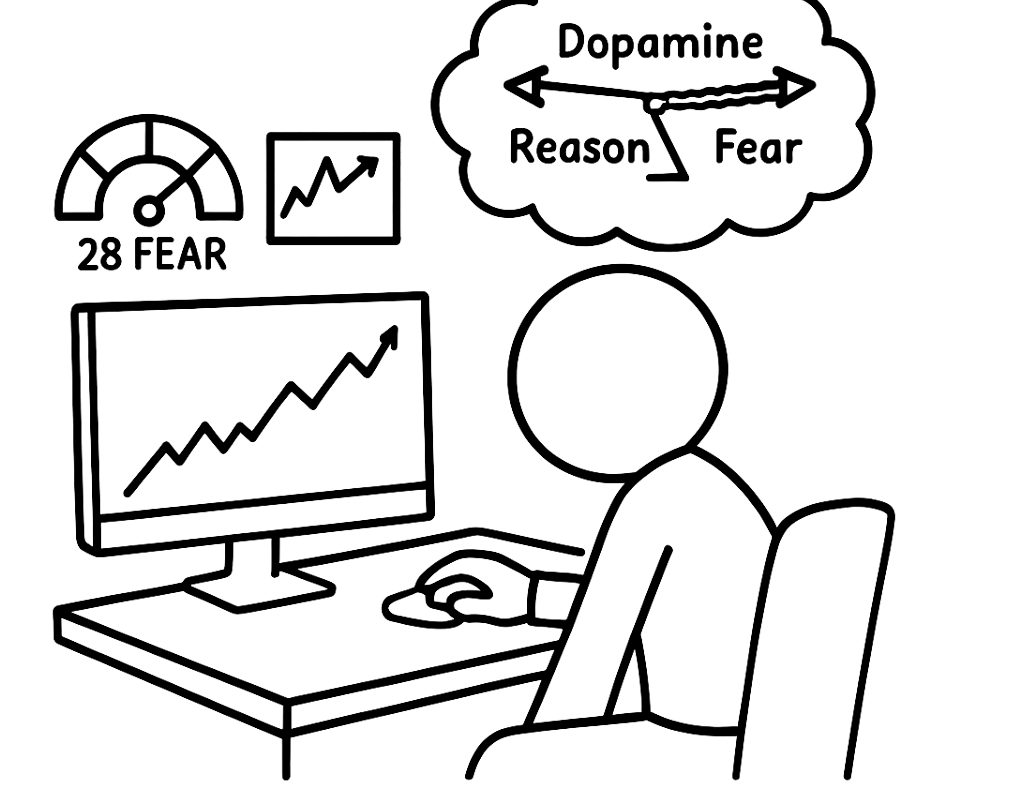공포·탐욕지수가 28인 상황에서 뇌는 위험에 반응하는 코르티솔 분비가 증가한다.